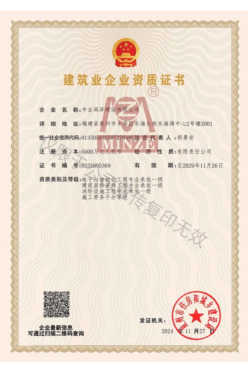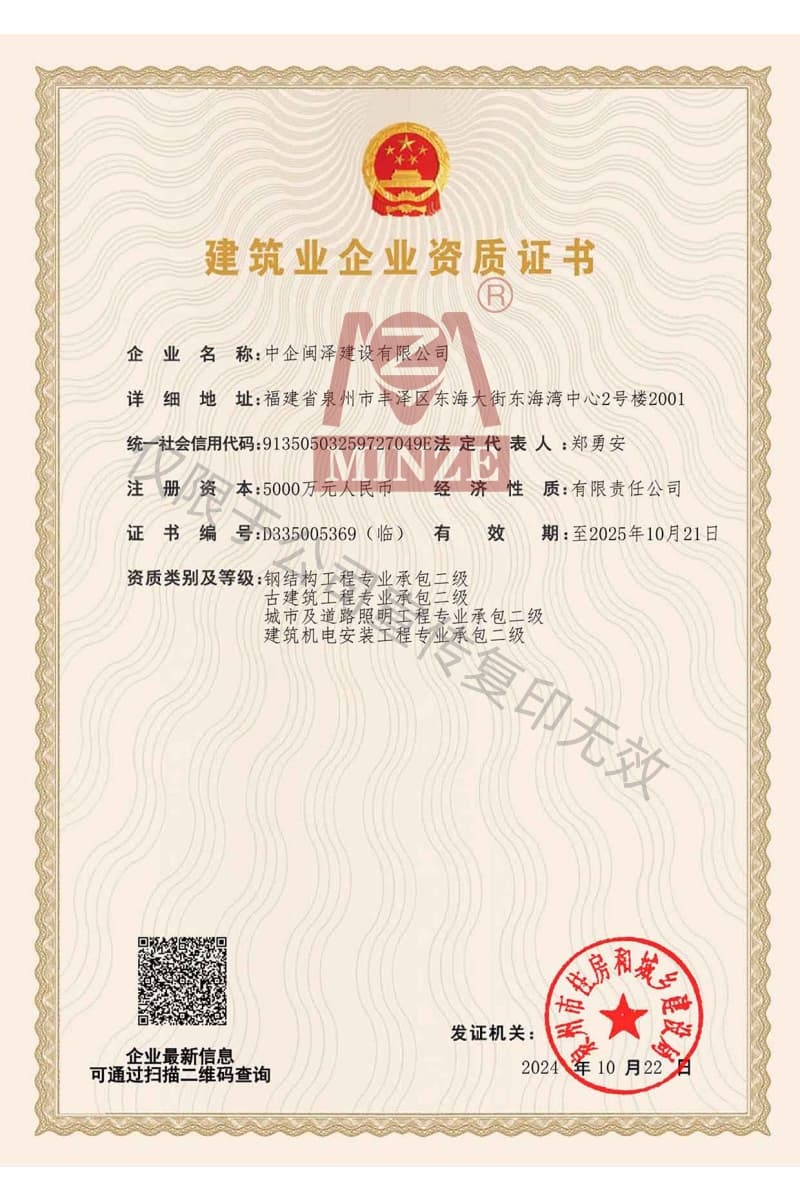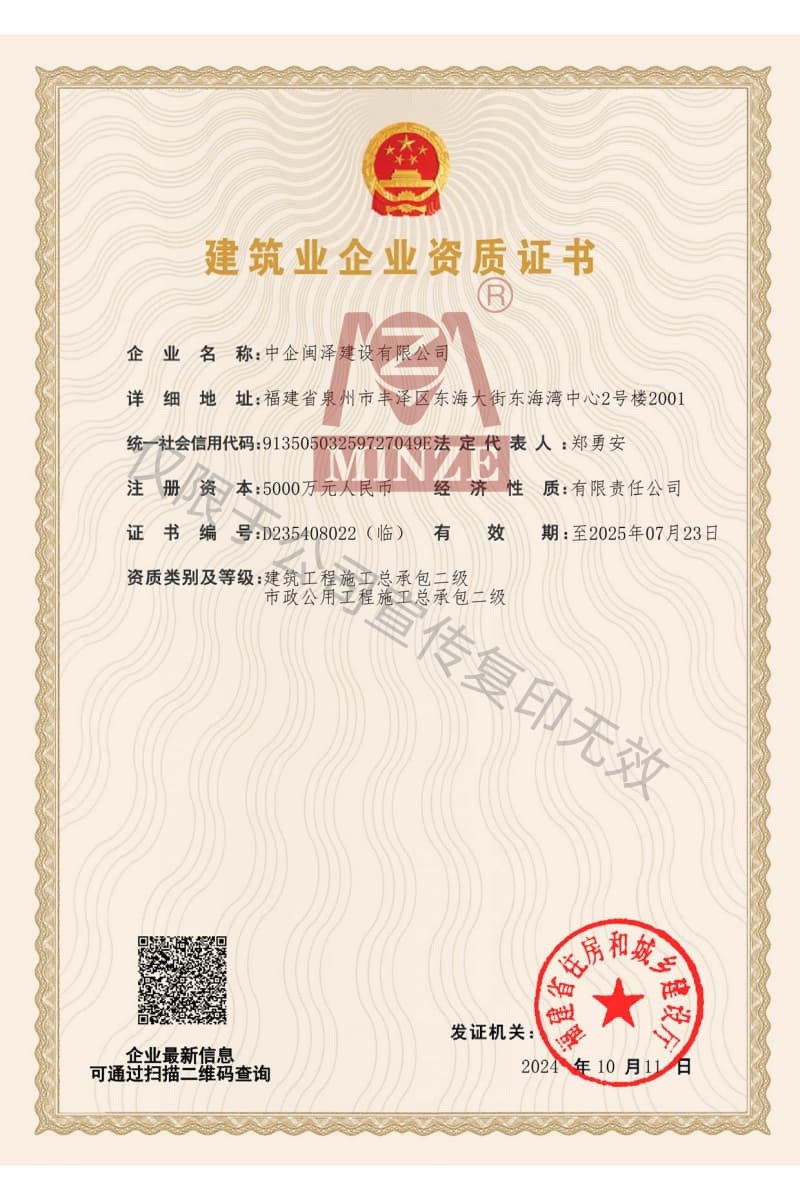 施工總承包資質證書