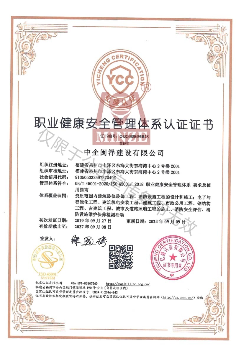 職業(yè)健康安全管理體系認證證書
