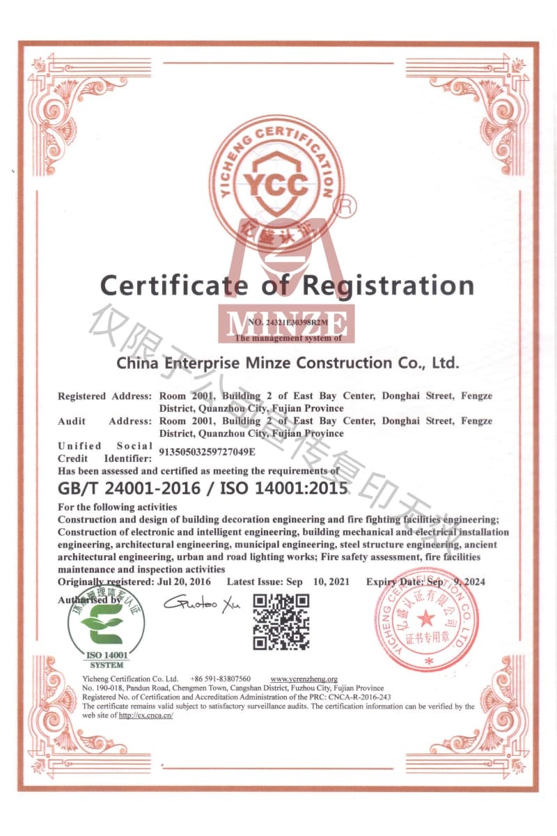環(huán)境管理體系認證證書(英)