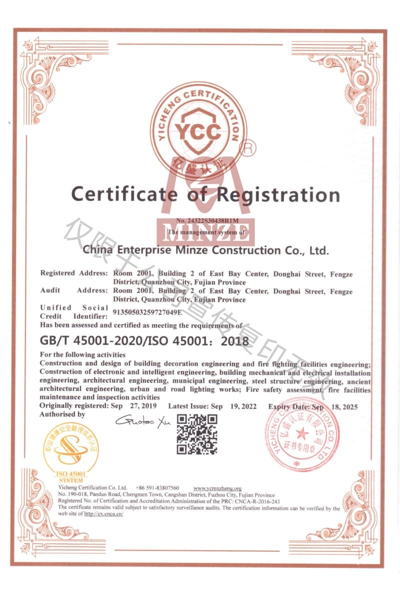 職業(yè)健康安全管理體系認證證書(英)