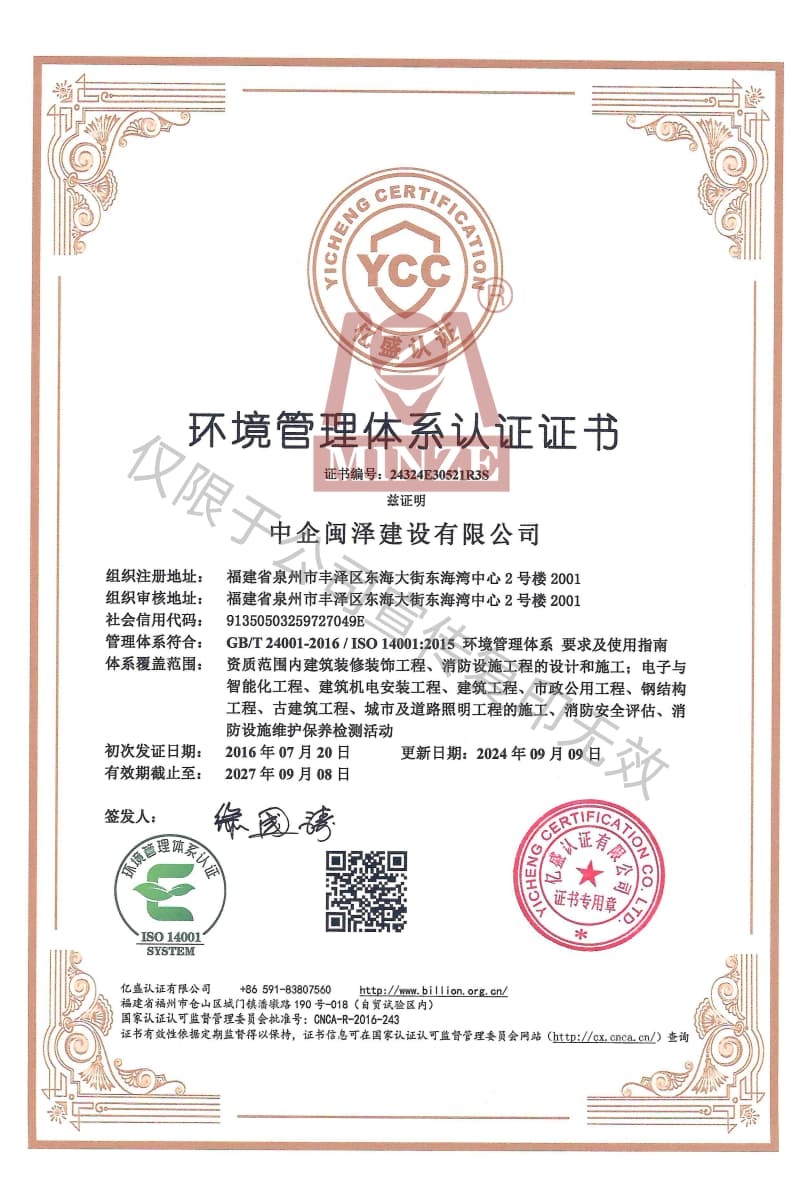 環(huán)境管理體系認證證書